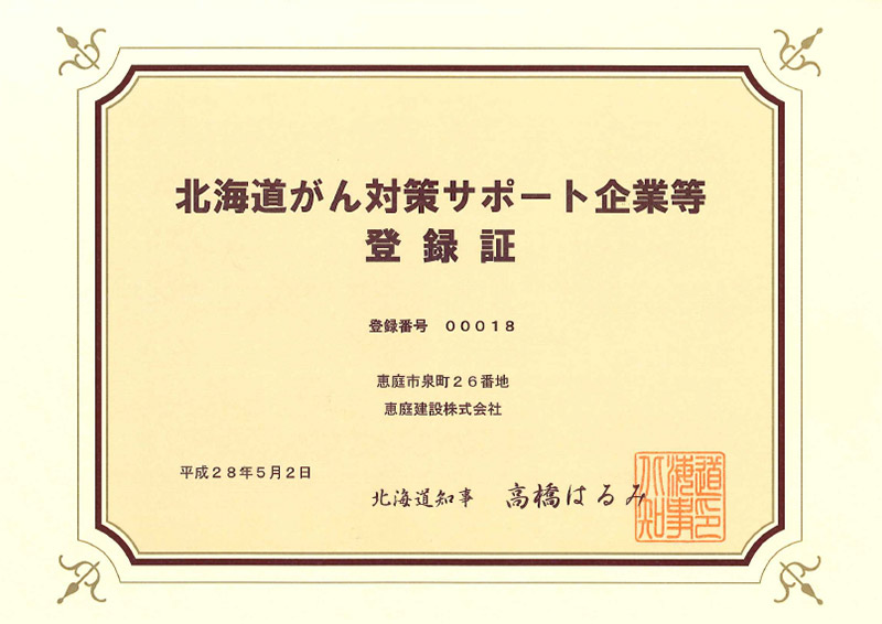 2016年(平成28年)に北海道が「がん予防」のために創設した制度です。当社では、同年より以下の取り組みを実施しています。